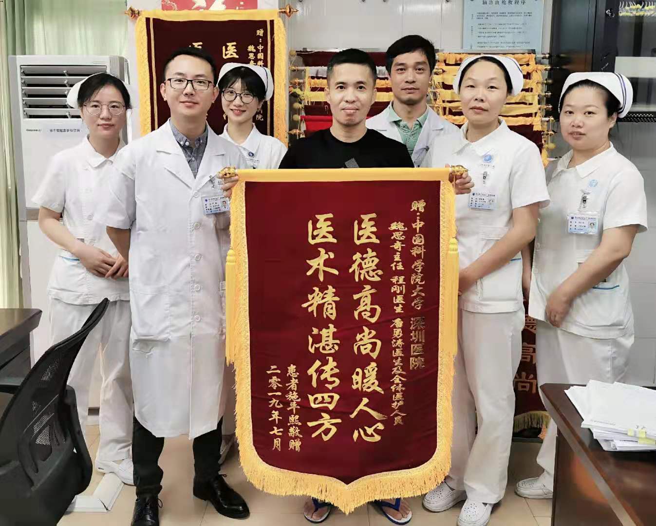 7月23日,超声医学科收到来自患者杨先生的一面锦旗。35岁的杨先生,10年前就被多家医院诊断为“肝硬化、肝衰竭”,得知自己患上晚期难治性疾病,一下子失去了生活的信心。后辗转来到做爱自拍 超声科,经第十三党支部党员、超声科主任何光智诊断,杨先生并非患上了晚期肝病,而是由于先天性大血管畸形引起的巴德-基亚里综合征(布加综合征),只要做介入治疗,肝功能完全可以恢复正常!得到正确诊断及正规治疗的杨先生肝功能大大改善了,一直随诊复查,感激之情难以言表,特制锦旗表达谢意。(通讯员 张家玲)