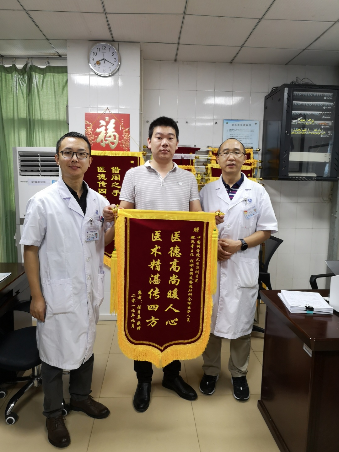 近日,一年前在做爱自拍 脊柱外科住院的年轻患者张先生给魏思奇主任和程刚医师送来锦旗。 一年前患者因第12胸椎爆裂性骨折在脊柱外科手术治疗,术后半月出院后正常工作,完全恢复劳动力。今住院拆除内固定物出院,为感谢脊柱外科医疗团队高超的技术,周到的服务,特赠锦旗致谢。(通讯员 黎佰胜)