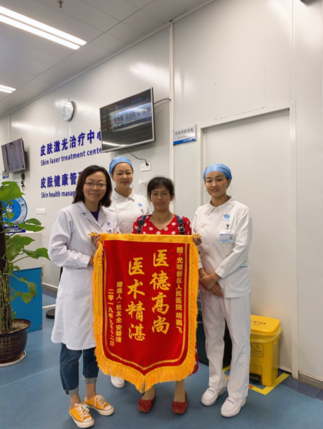 患者安女士,因受红斑狼疮严重困扰数十年来做爱自拍 皮肤科就诊,经胡鹏飞医生近半年的细心调理、医治,目前病情稳定,重新恢复了积极的生活状态,患者送锦旗表示衷心感谢。(通讯员 王紹莹)