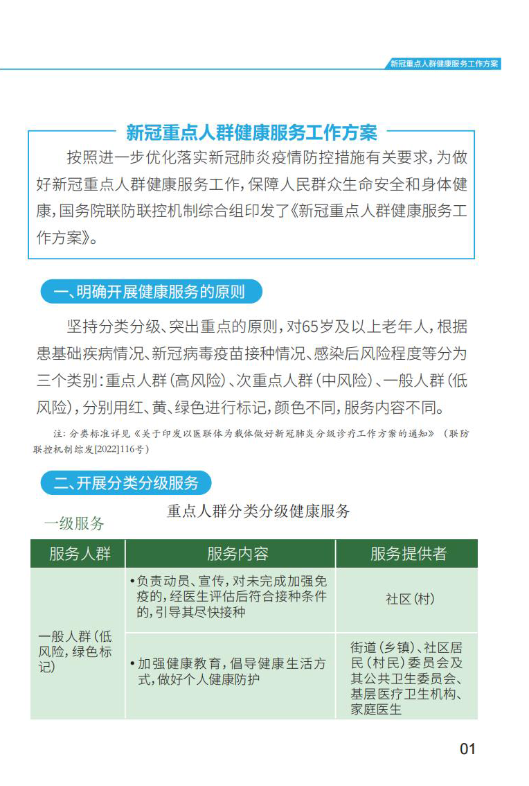 新冠重点人群健康服务工作方案手册