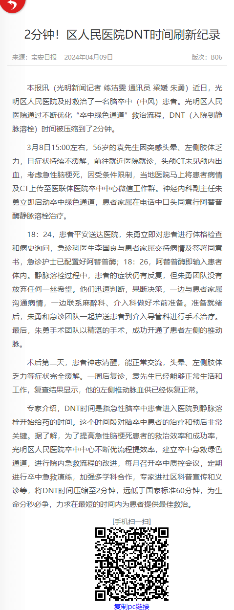 宝安日报:2分钟!区人民医院DNT时间刷新纪录