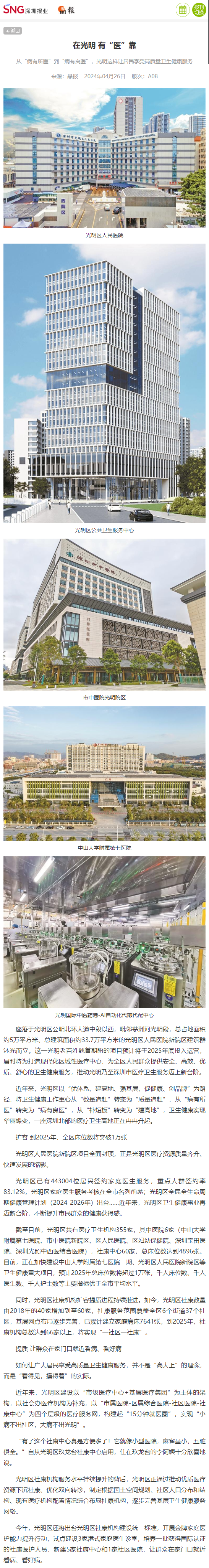 晶报:在光明有“医”靠 从“病有所医”到“病有良医”,光明这样让居民享受高质量卫生健康服务