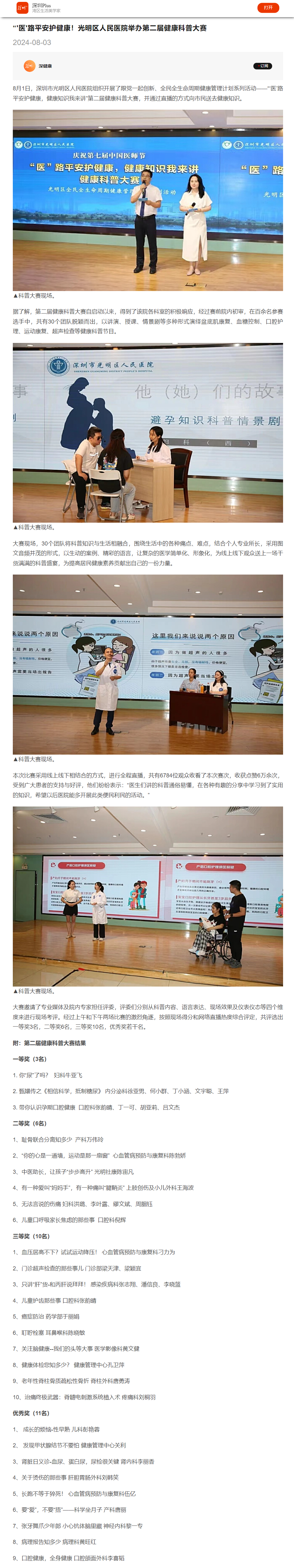 深圳plus:“'医'路平安护健康!光明区人民医院举办第二届健康科普大赛