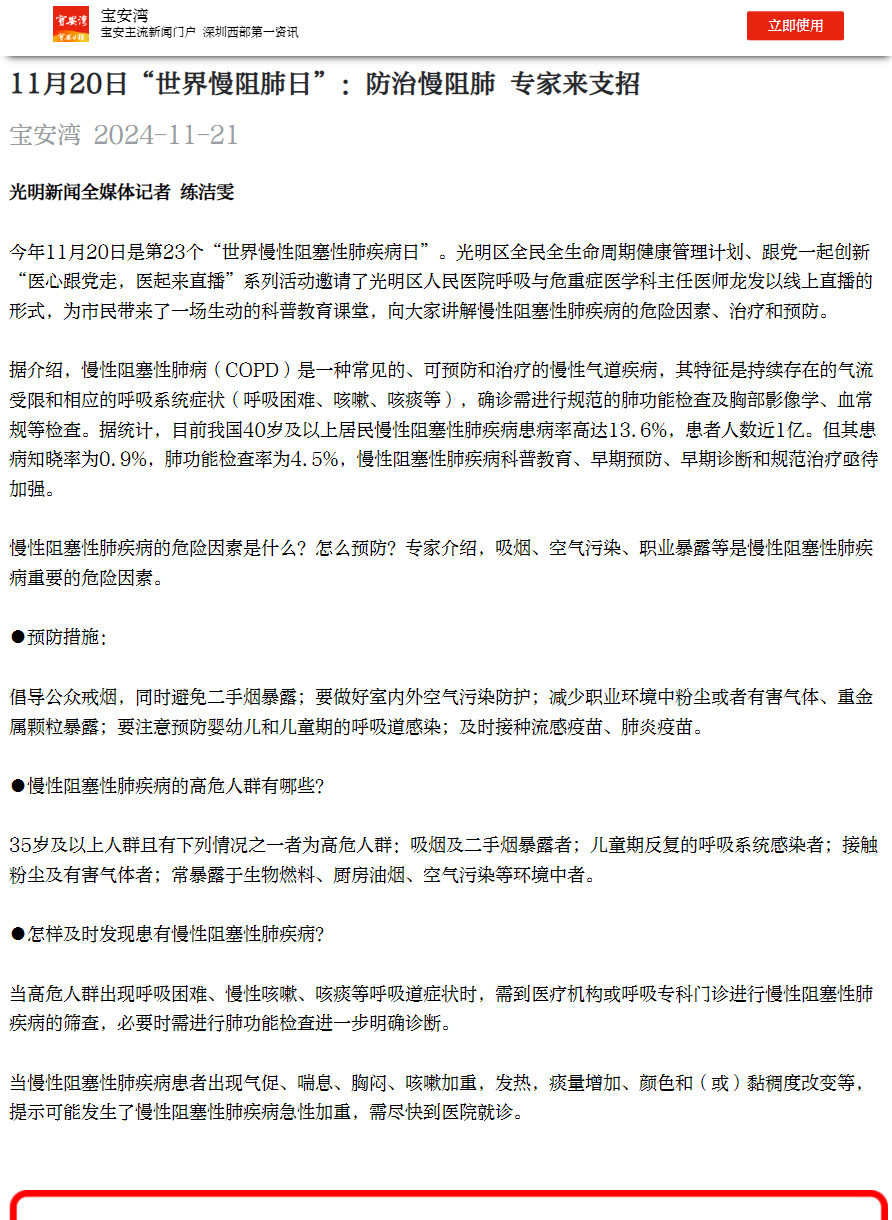 宝安湾:11月20日“世界慢阻肺日”:防治慢阻肺 专家来支招