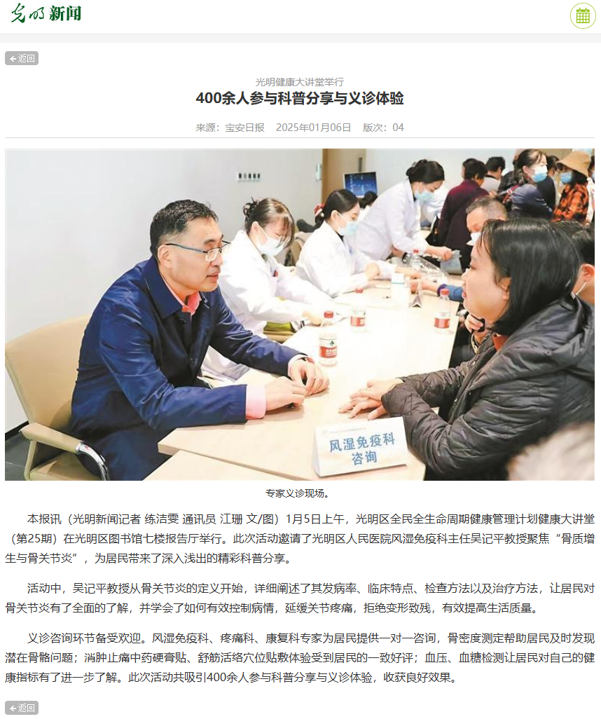 光明新闻:光明健康大讲堂举行 400余人参与科普分享与义诊体验