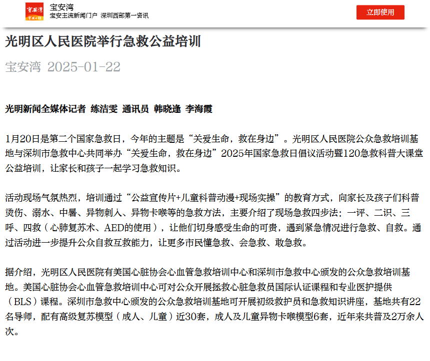 宝安湾:光明区人民医院举行急救公益培训